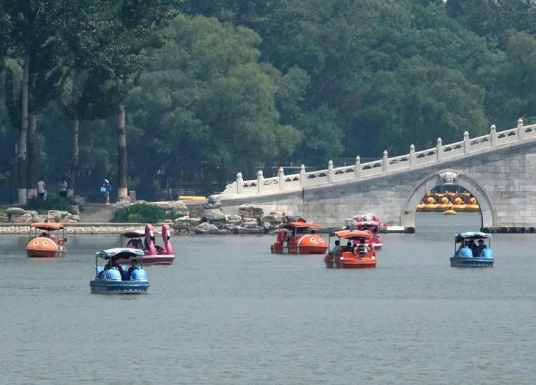 △10日,北京握续晴晒天气,游东说念主在玉渊潭公园游玩。