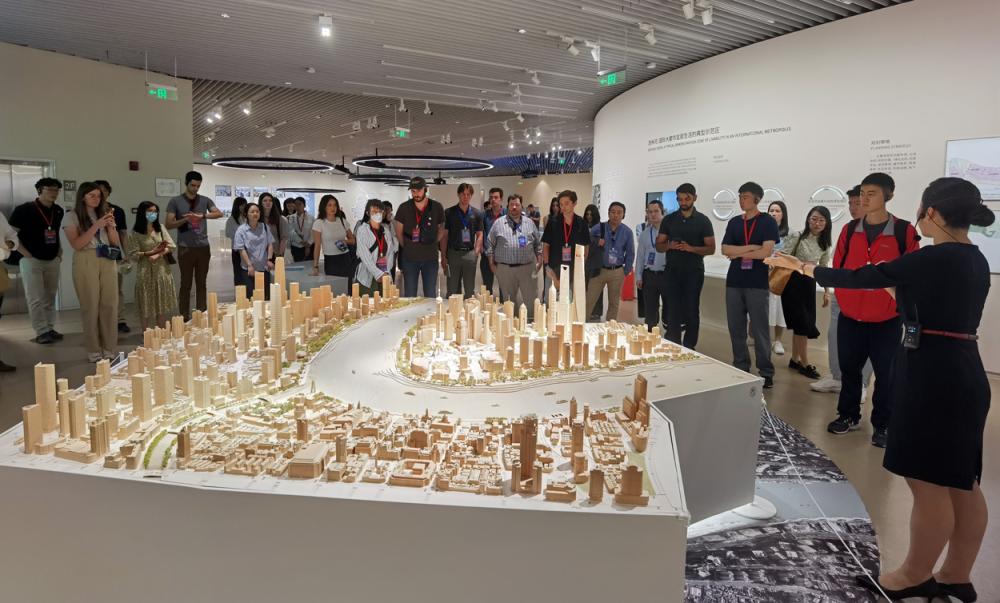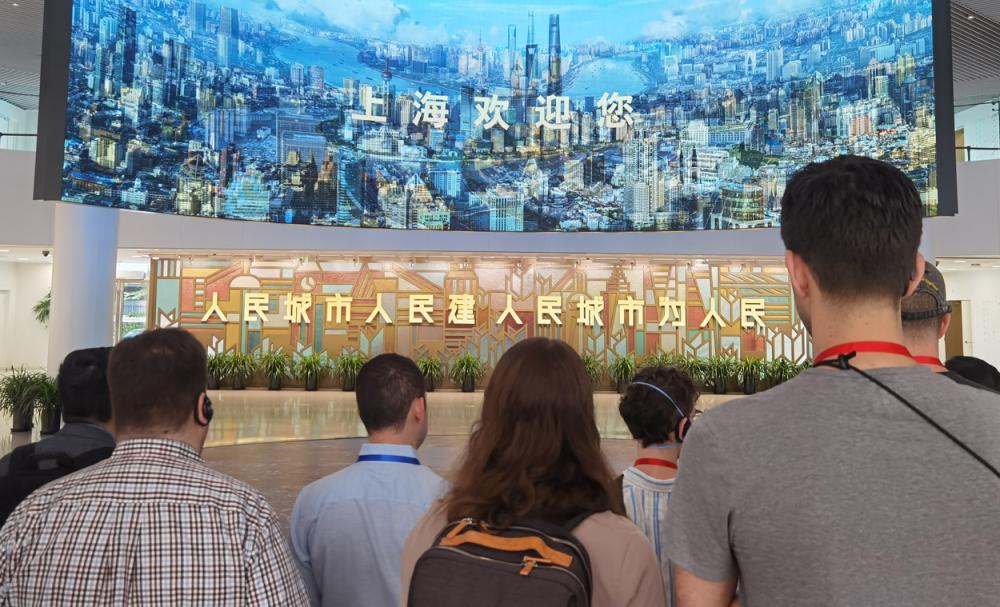 6月9日,来访的好意思国后生参不雅上海城市看法展示馆。新华社记者 许晓青摄