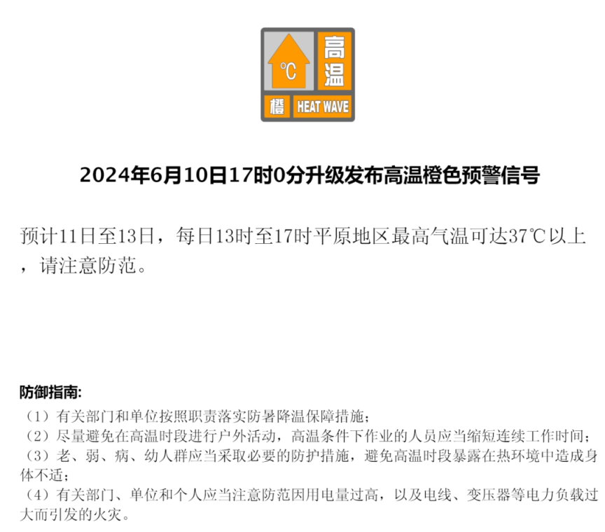 高温橙色预警中,高温握续,体感酷热,请珍藏防暑降温勤补水。