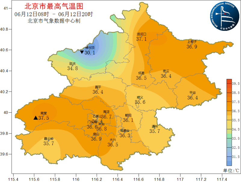 南郊不雅象台最高气温36.3℃(13日16:47)