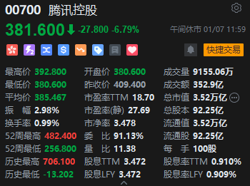 腾讯控股股价大跌近7%。当地时分1月6日,好意思国国防部将腾讯、宁德期间等多家中国科技公司列入 1260H 清单(CMC 清单),将旷视等公司移除。对此,腾讯公司在声明中示意,“腾讯被列入这份名单赫然是一个舛错,咱们并不是军工企业或军工供应商。不同于出口管理或其他,这份清单对咱们的业务莫得影响。尽管如斯,咱们仍将同好意思国关系部门共同贬责曲解。”