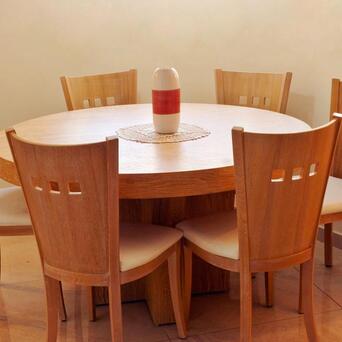 圆形餐桌在家庭餐厅中的非连续见,许多东谈主心爱圆形餐桌的造型和广宽的用餐空间。然而,在本色使用经由中,圆形餐桌很容易形成空间的花费。因为这种餐桌尺寸比拟大,只在东谈主多聚餐时使用,平常一家几口东谈主吃饭,根蒂用不着那么大的圆形餐桌,于是就形成了花费。